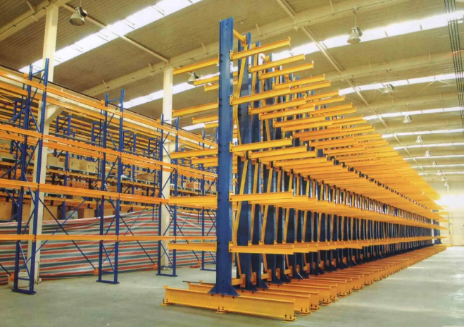 懸臂貨架,有往外延伸的雙臂來支撐貨物,适合於(yú)放長(zhǎng)條形狀的貨物,例如:鋼材、闆材、型材