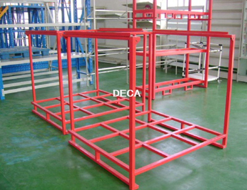 堆垛架,可相互堆3到4層,形成立體存儲模式,無需借助貨架、倉儲籠和托盤等設備,适合用在租賃倉庫、低矮的老式倉庫或車間暫存區等不适合投資貨架的區域。