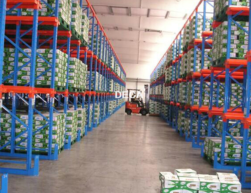 貫通式貨架又叫通廊式貨架。可實現先進先出和先進後出兩種貨物存取模式,貫通式貨架採用托盤存取方式,适合存放品種單一、數量少、批量大的倉庫使用。貫通式貨架需要搭配叉車進行使用,叉車需要進入貫通式貨架内部才能存取貨物,因此濟南倉儲貨架廠德嘉建議貫通式貨架單側提貨的深度不要超過7個貨位。爲瞭提高叉車的運行速度,可以根據實際需要選擇和配置導軌。貫通式貨架的利用率可提高30%以上,廣泛應用於冷藏、食品和煙草行業。